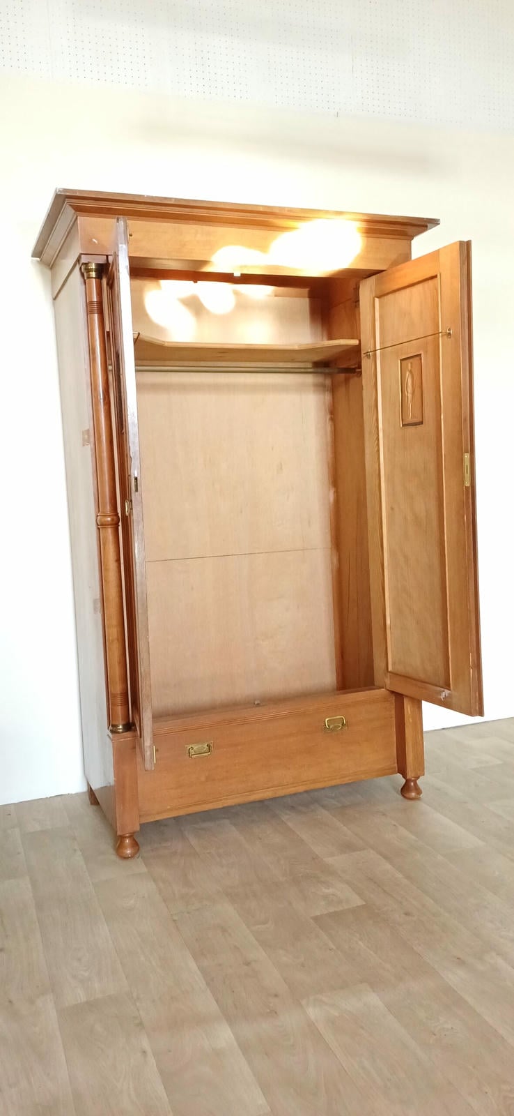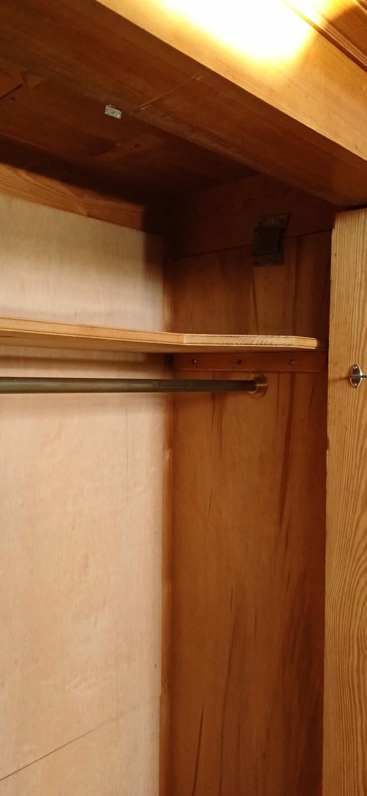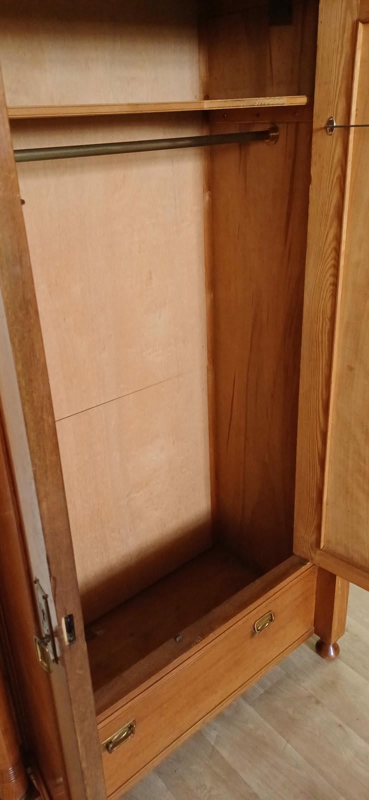 Ta antyczna dwudrzwiowa szafa vintage to wyjątkowy mebel z duszą, który łączy historię, solidne rzemiosło i ponadczasowe piękno naturalnego drewna. Jej oryginalny stan zachowany został z dbałością o autentyczność – drobne ślady użytkowania stanowią nie wady, lecz atuty, podkreślające jej niepowtarzalny charakter.