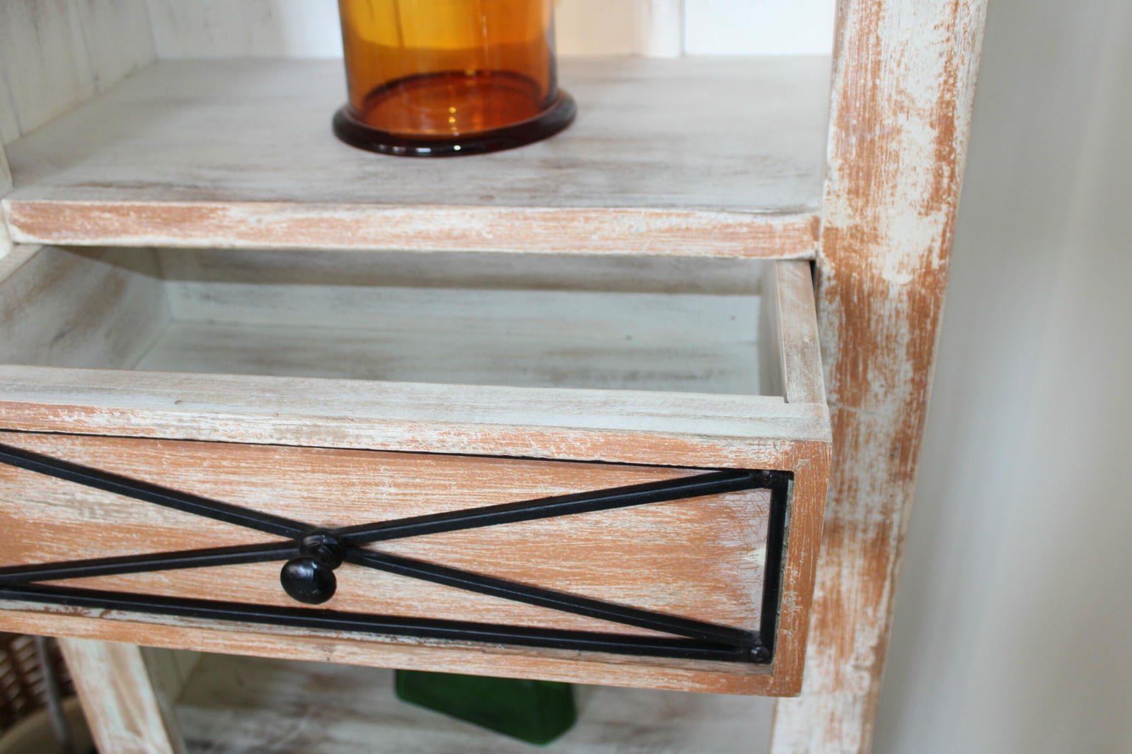 Regał idealnie sprawdzi się jako witryna, biblioteczka lub ekspozycja dekoracji, wprowadzając do wnętrza klimat dawnych lat. To mebel vintage z duszą, który łączy w sobie delikatny urok prowansalskiej estetyki i surową prostotę rustykalnych wnętrz.