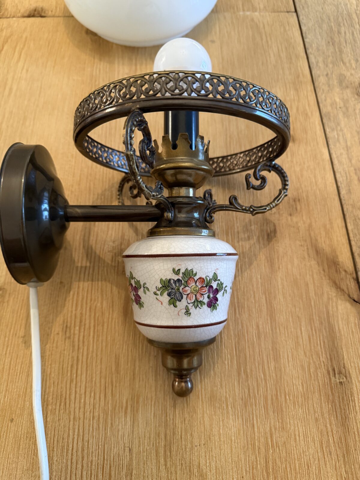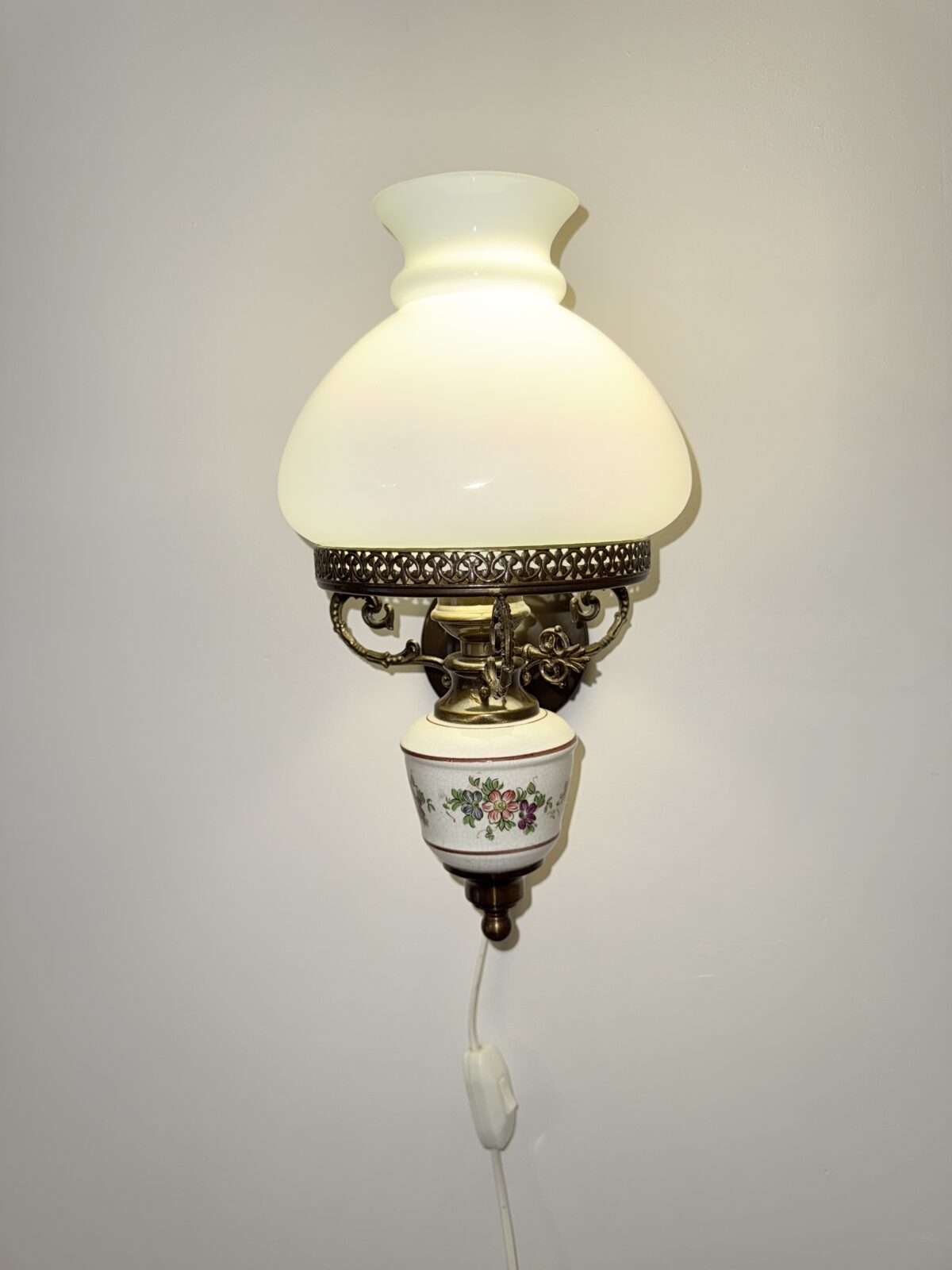 Ten wyjątkowy duński kinkiet vintage to połączenie rustykalnego uroku i subtelnej dekoracyjności. Lampa zachwyca delikatnymi, kwiatowymi zdobieniami, które nadają jej lekkości i sprawiają, że staje się nie tylko źródłem światła, ale również ozdobą ściany. Jej klasyczna forma doskonale wpisuje się w estetykę wnętrz inspirowanych naturą, stylem skandynawskim, boho oraz retro.