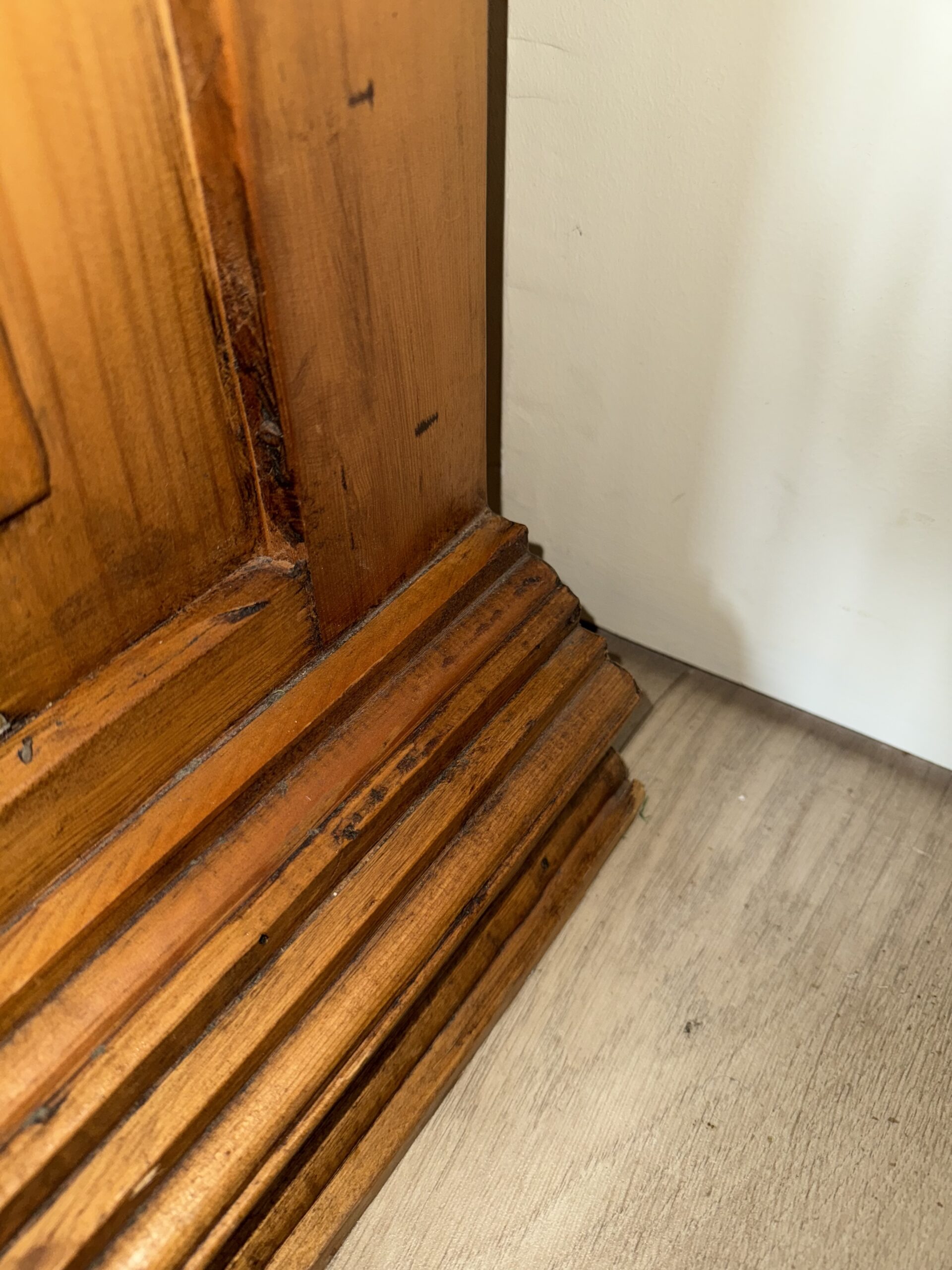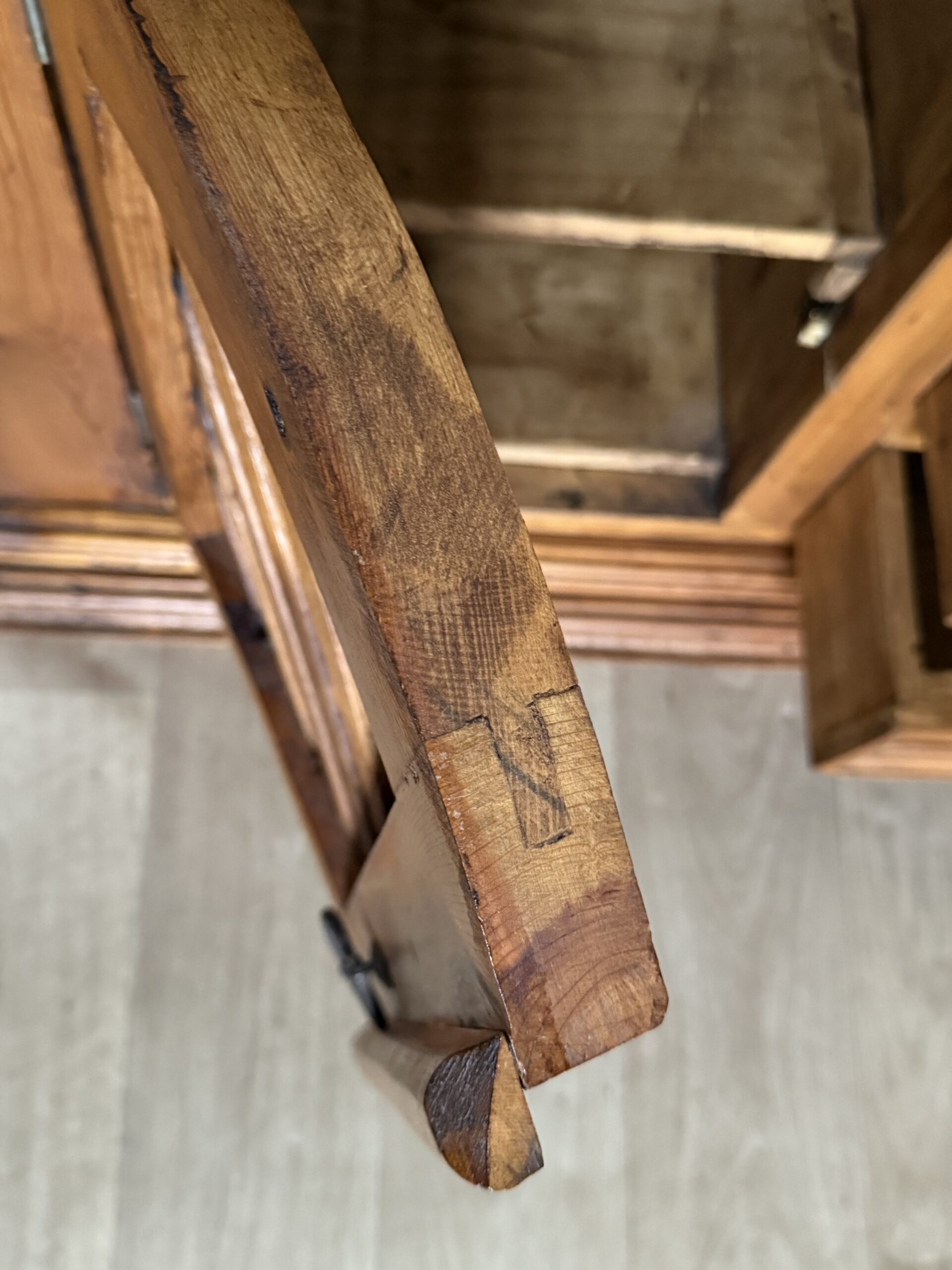 Mebel jest używany, w pełni stabilny i zachowany w dobrym stanie. Widoczne ślady użytkowania oraz naturalne oznaki upływu czasu nadają mu autentycznego charakteru i podkreślają jego unikalność.