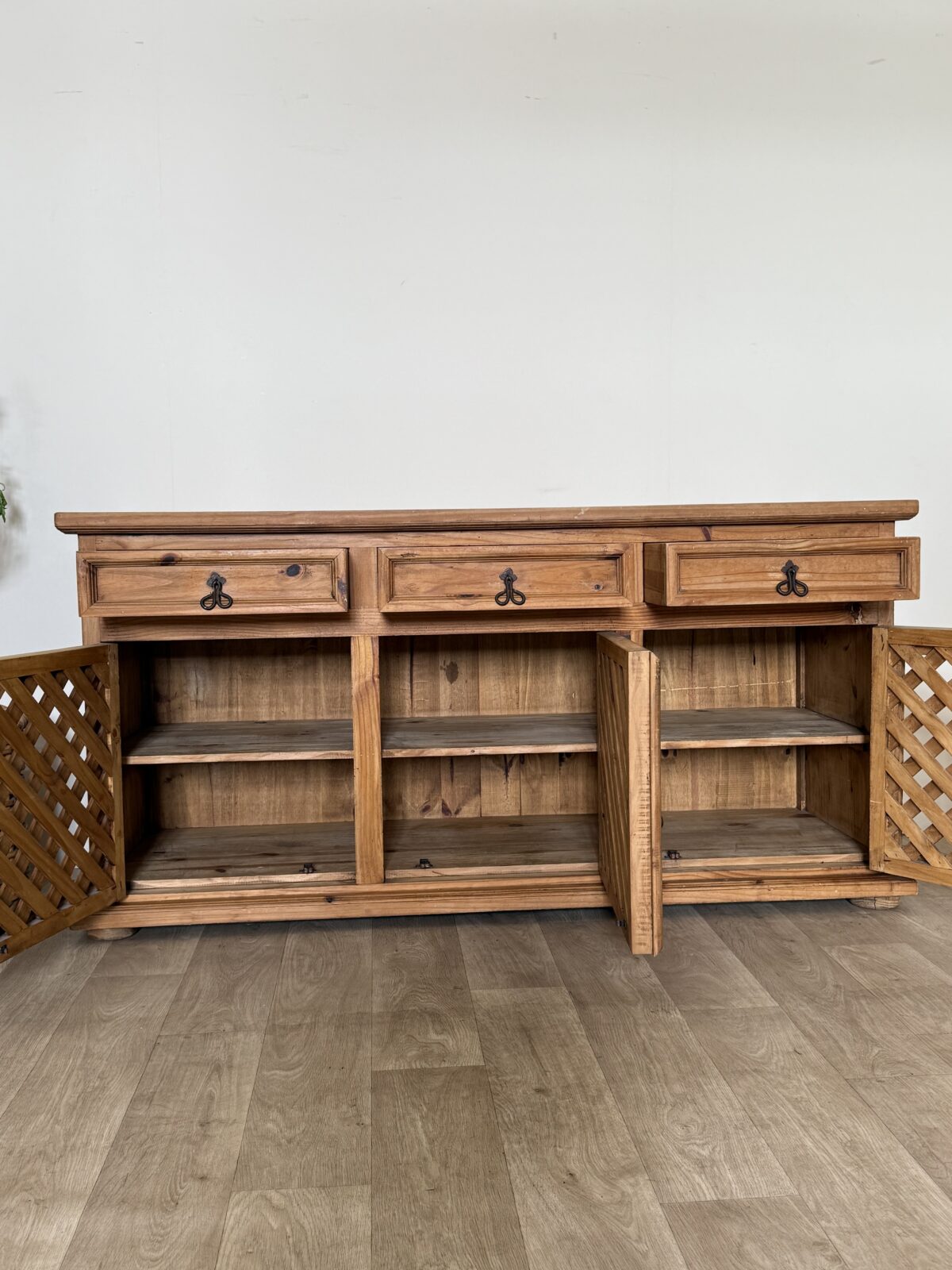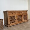 Stylowa komoda wykonana z drewna piniowego to propozycja dla osób ceniących naturalne materiały i oryginalne wzornictwo. Jej największym atutem są ażurowe fronty, które nadają bryle lekkości i dekoracyjnego charakteru, jednocześnie podkreślając jej unikatowy styl.