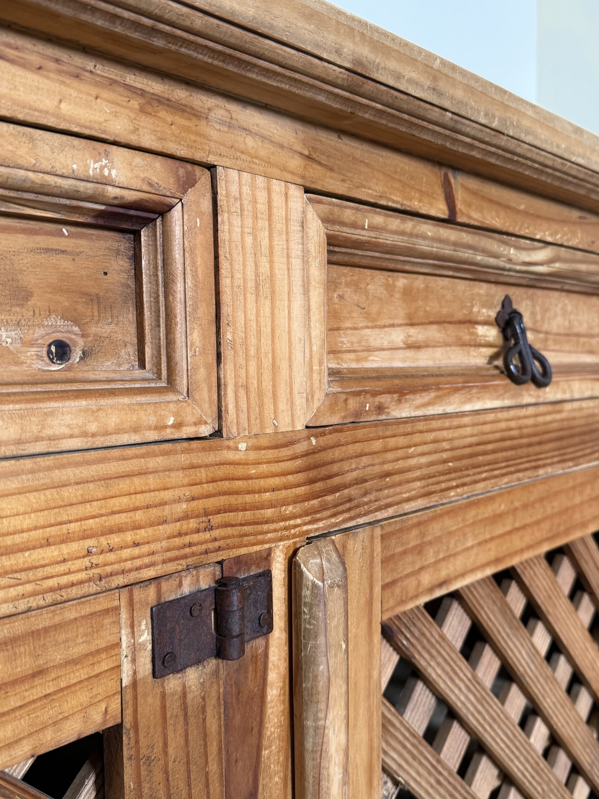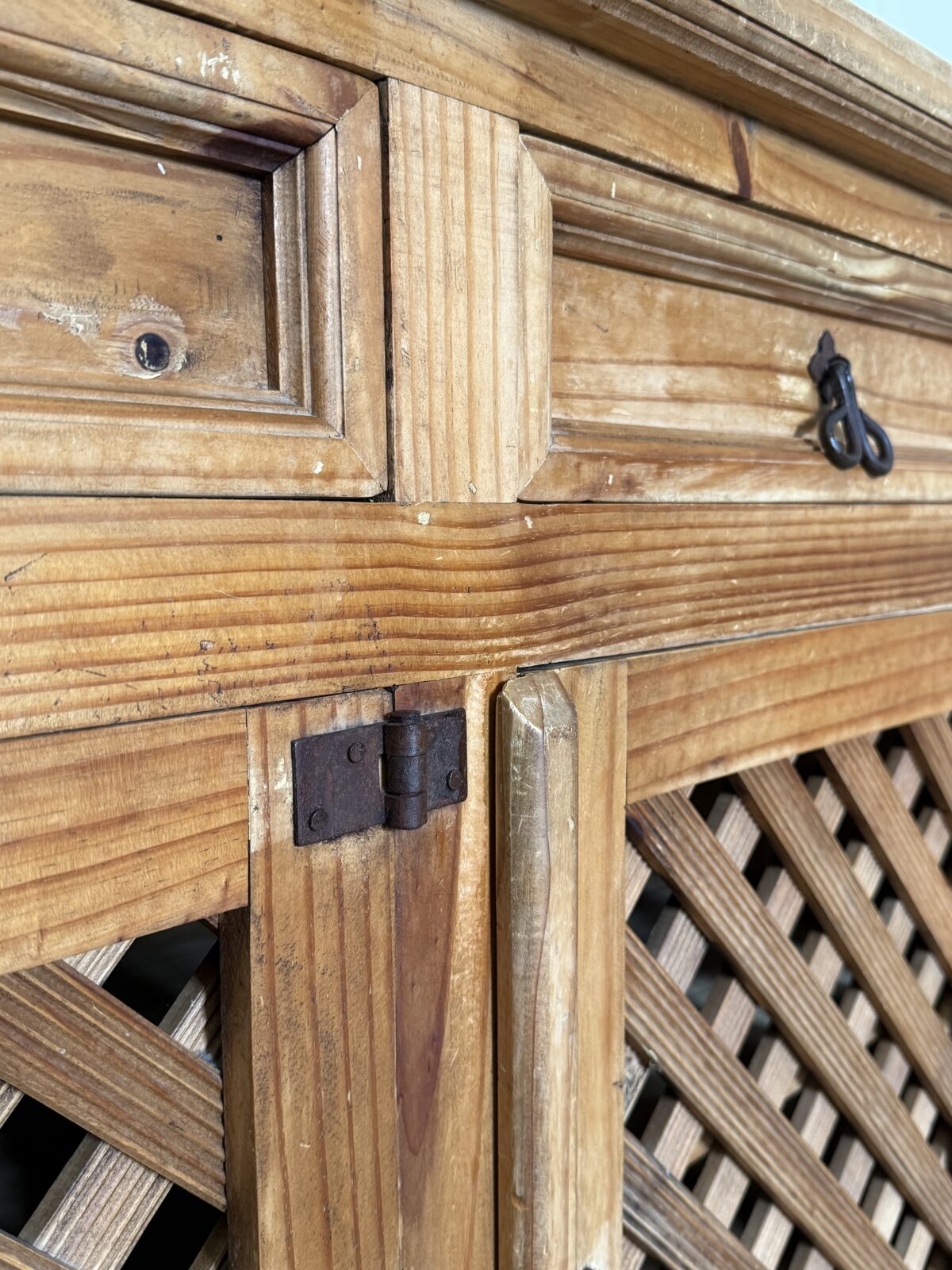 Mebel nosi naturalne ślady upływu czasu, które są typowe dla używanych drewnianych elementów wyposażenia i świadczą o jego autentyczności. To właśnie te detale nadają mu wyjątkowego klimatu i sprawiają, że każdy egzemplarz ma swoją historię.