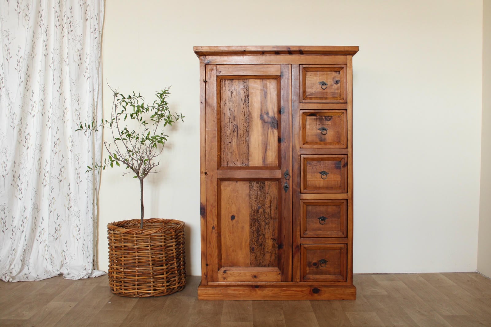 Komoda łączy w sobie elegancję i funkcjonalność – pojemna szafka i cztery praktyczne szuflady zapewniają sporo miejsca na przechowywanie, jednocześnie stanowiąc efektowny element wystroju. To mebel dla osób, które cenią ręczne wykonanie, trwałość i niepowtarzalność naturalnych materiałów.