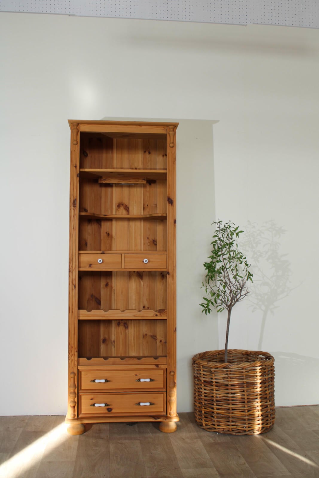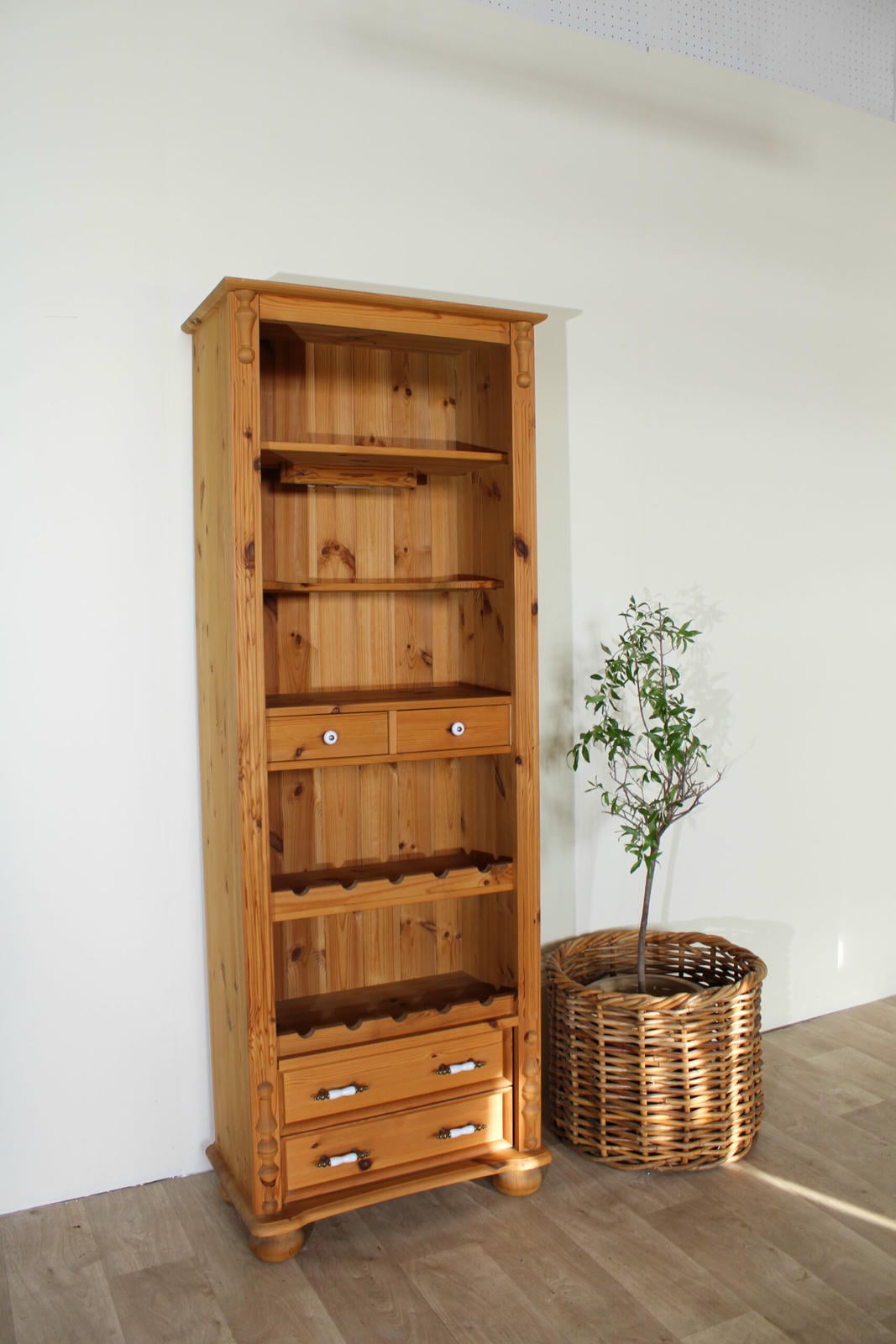 Na sprzedaż rustykalny regał na alkohol i wino wykonany z sosny w naturalnym odcieniu. Mebel jest używany i posiada delikatne ślady czasu, które nadają mu wyjątkowy retro i vintage charakter. Doskonale sprawdzi się w salonie, jadalni, kuchni, domowym barku, a także w pubach lub sklepach specjalistycznych.