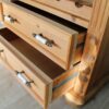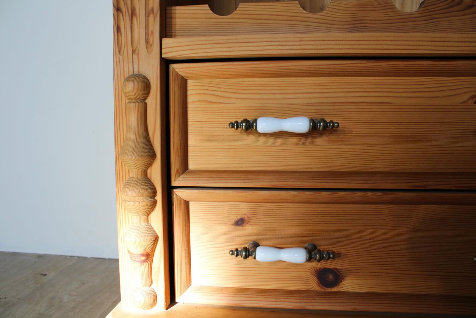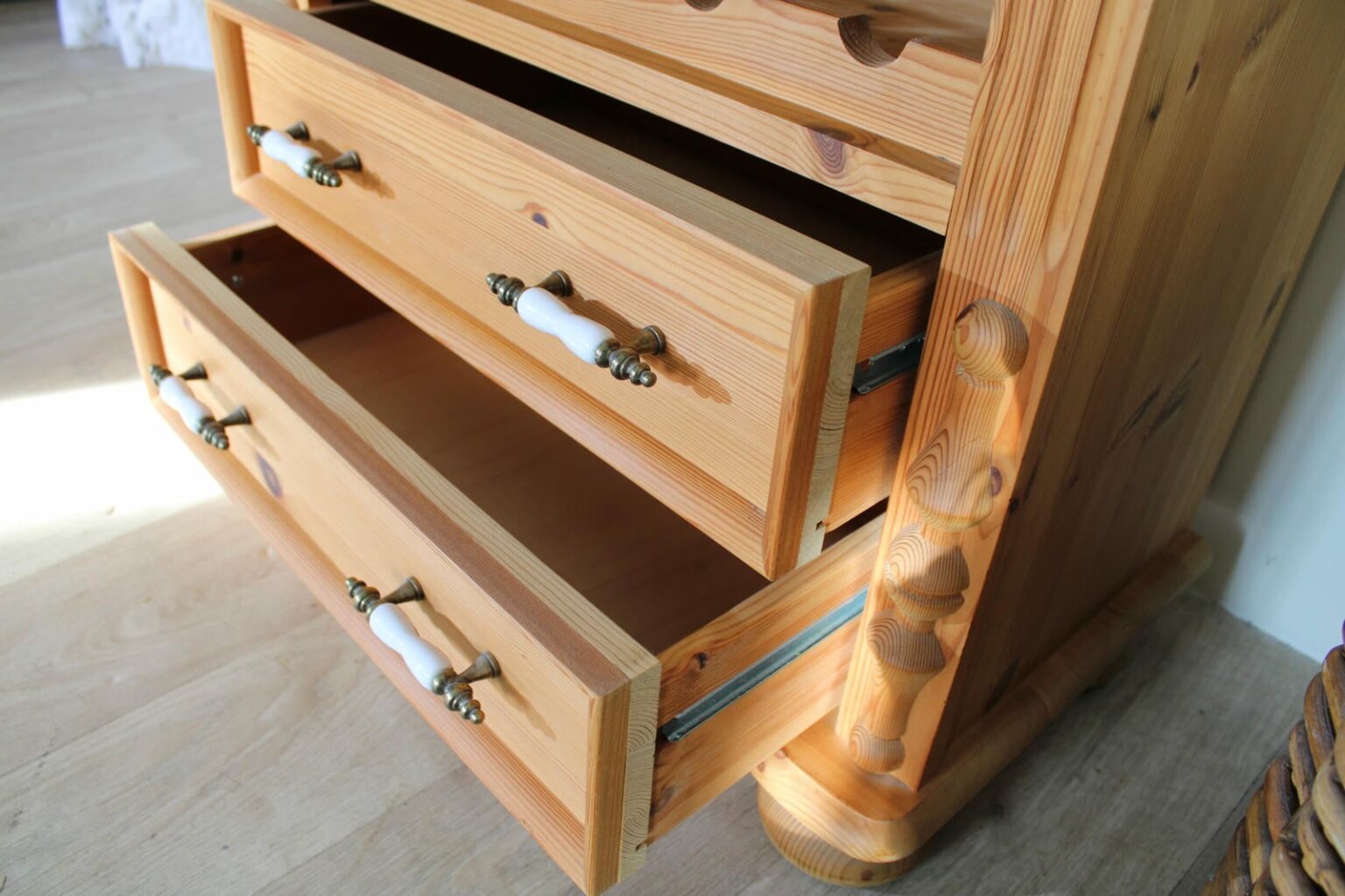 Naturalny, sosnowy kolor i lekko rustykalne wykończenie sprawiają, że mebel pasuje do wnętrz w stylu rustykalnym, retro, skandynawskim, vintage, boho czy klasycznym.