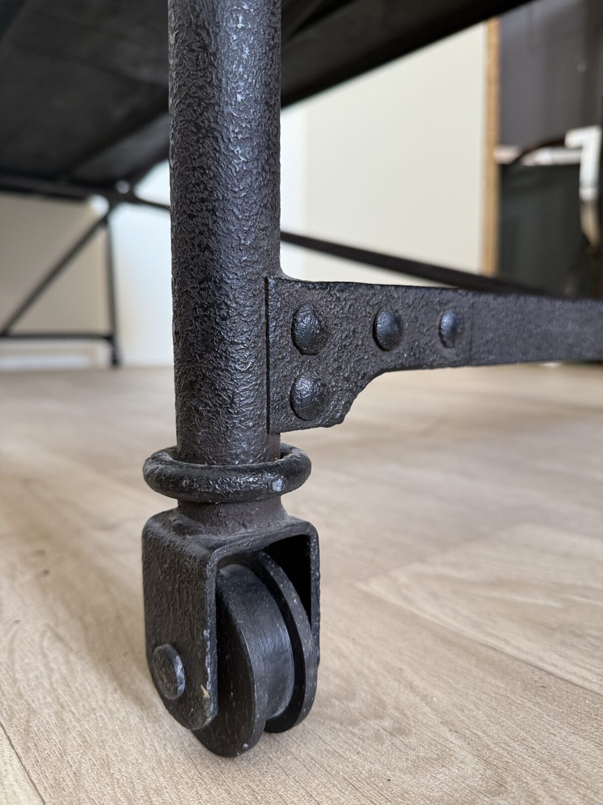 Solidny stalowy stelaż stanowi doskonały kontrast dla ciepła drewna. Jego surowa forma podkreśla industrialny styl, jednocześnie zapewniając stabilność i trwałość na lata. To połączenie materiałów – naturalnego i przemysłowego – sprawia, że stół staje się centralnym punktem każdego wnętrza.