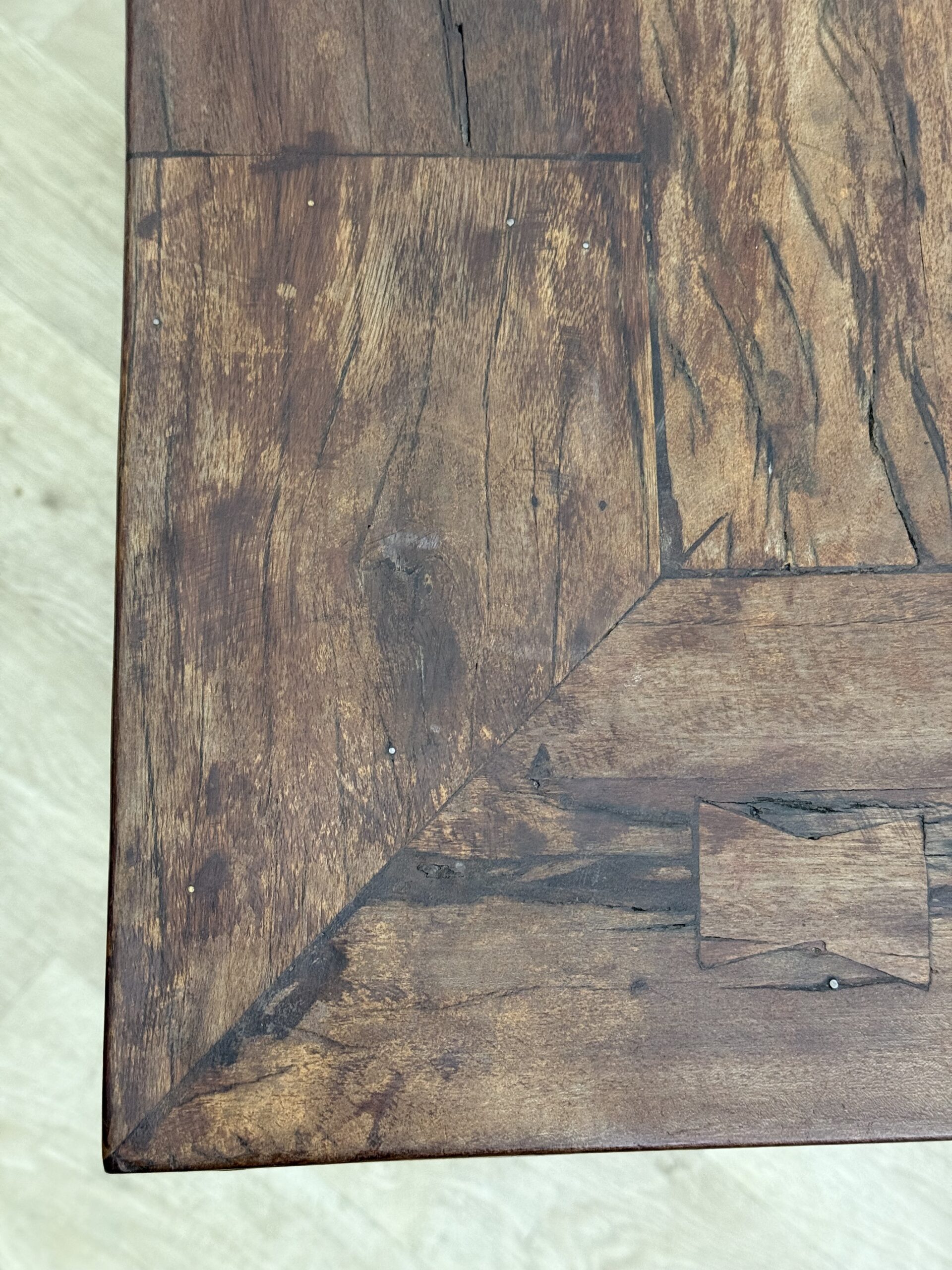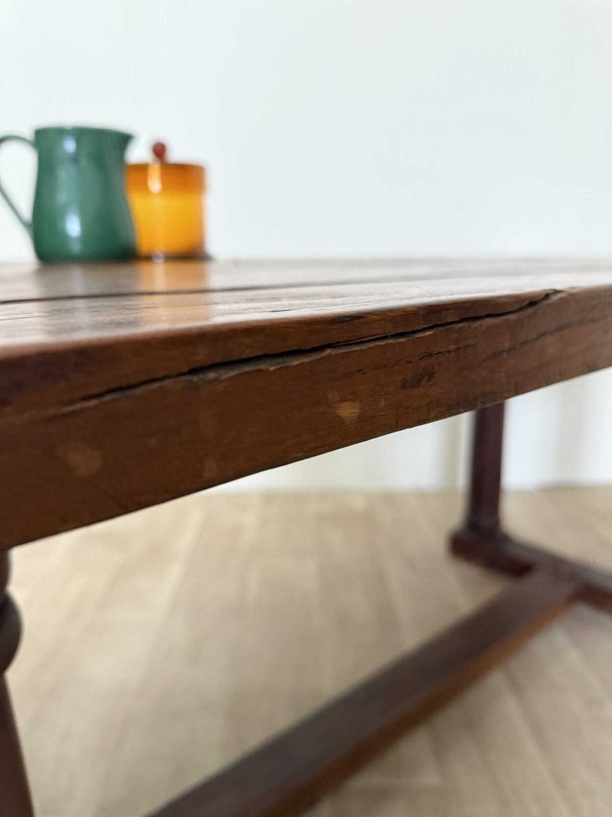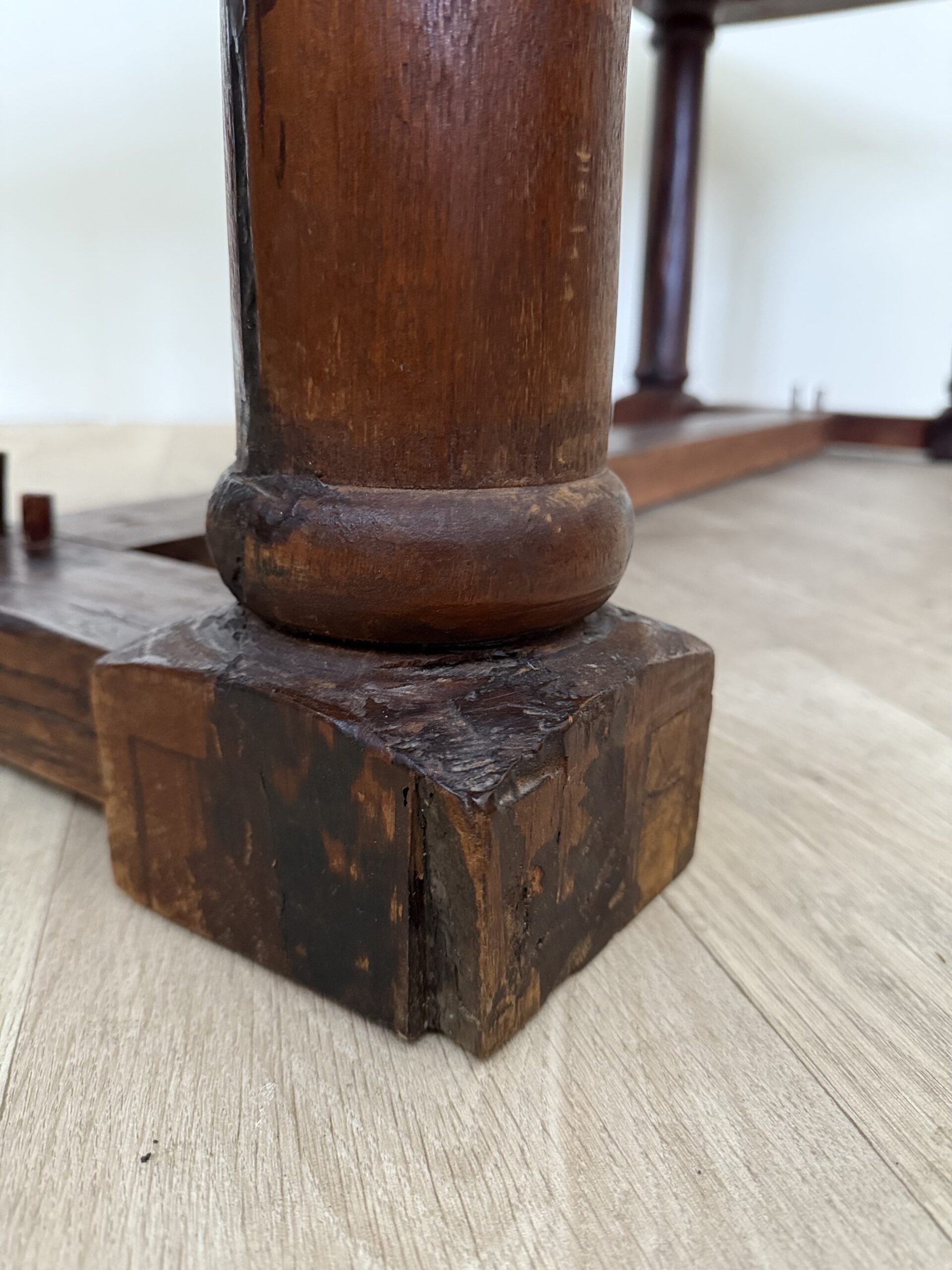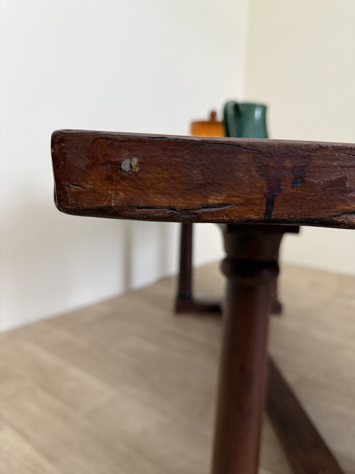 To nie jest współczesna stylizacja – to oryginalny mebel z naturalnymi oznakami upływu czasu. Szlachetna patyna, subtelne przetarcia i niuanse powierzchni tworzą efekt, którego nie da się podrobić. Każdy ślad jest częścią historii tego stołu i potwierdzeniem jego autentyczności.