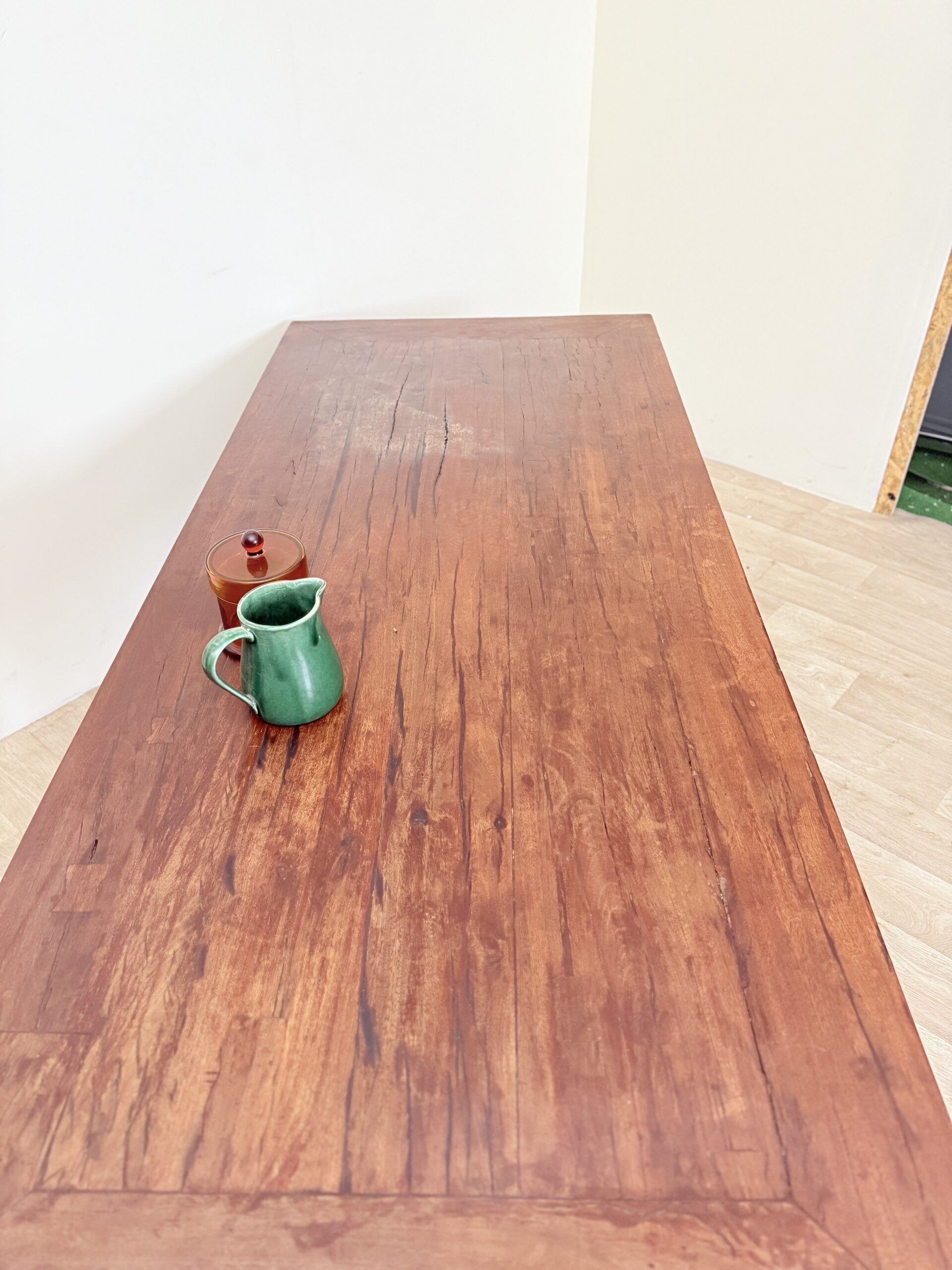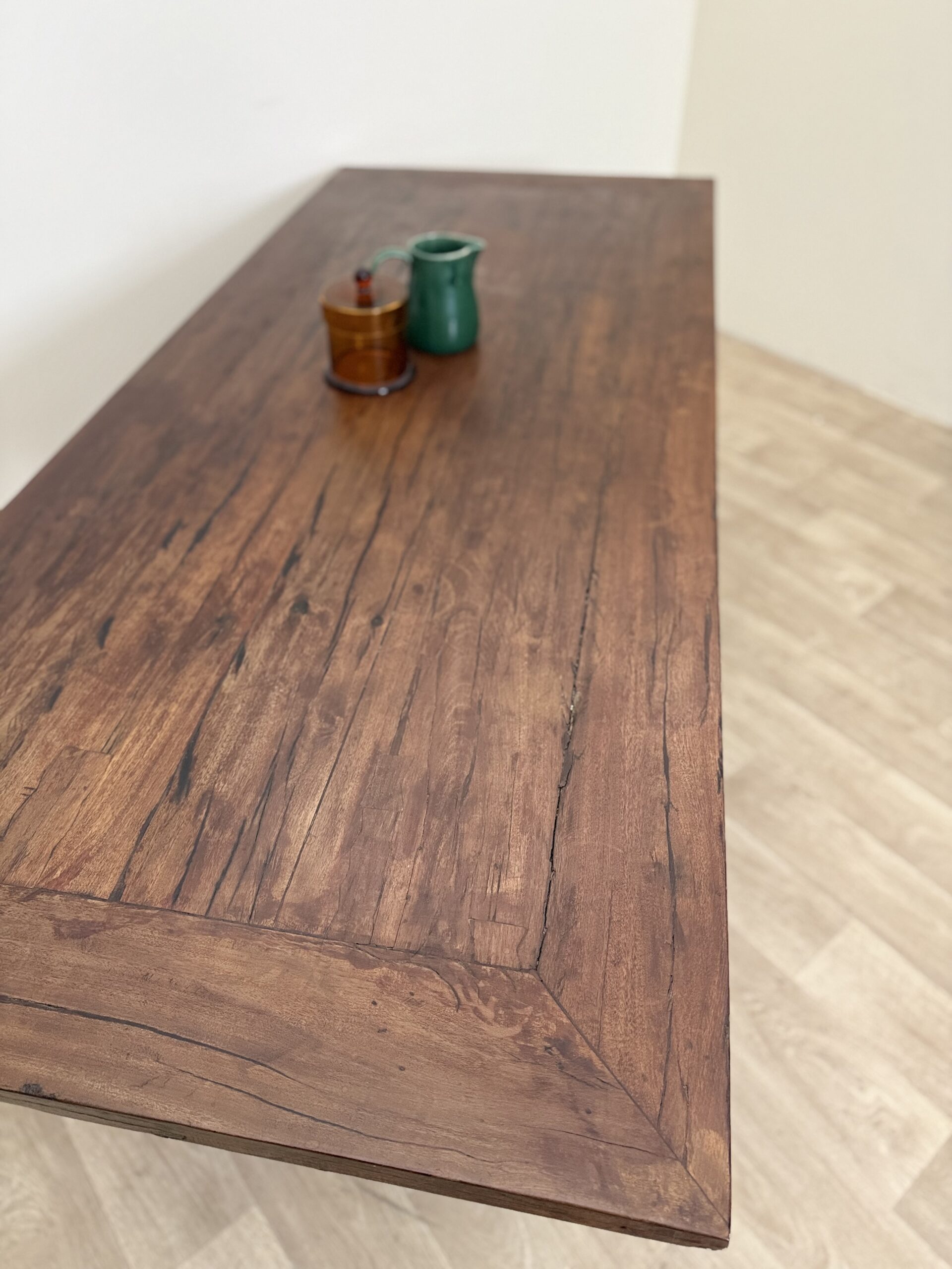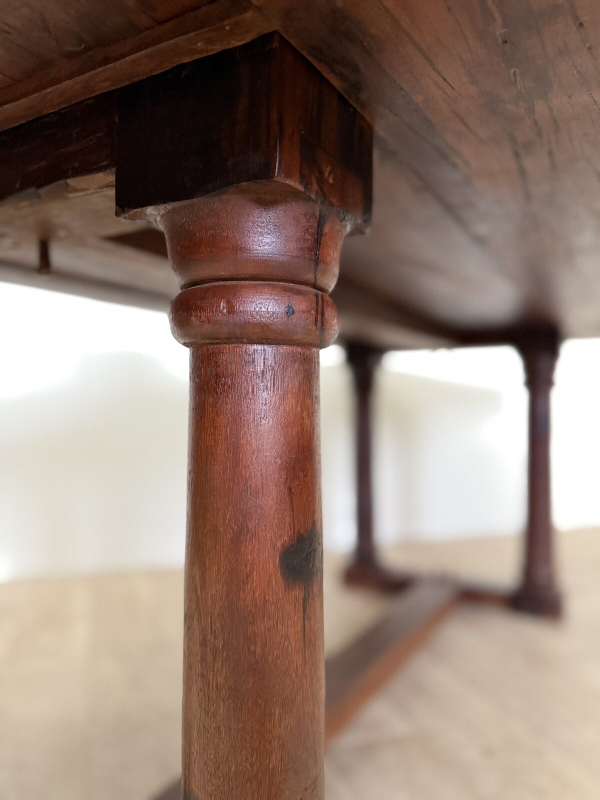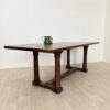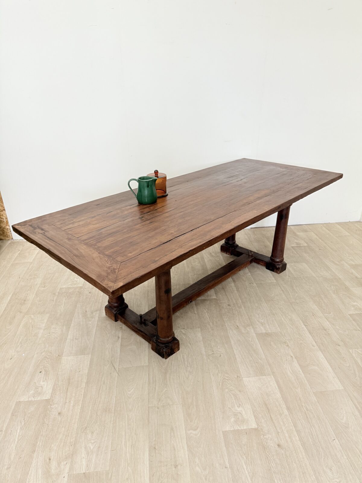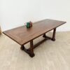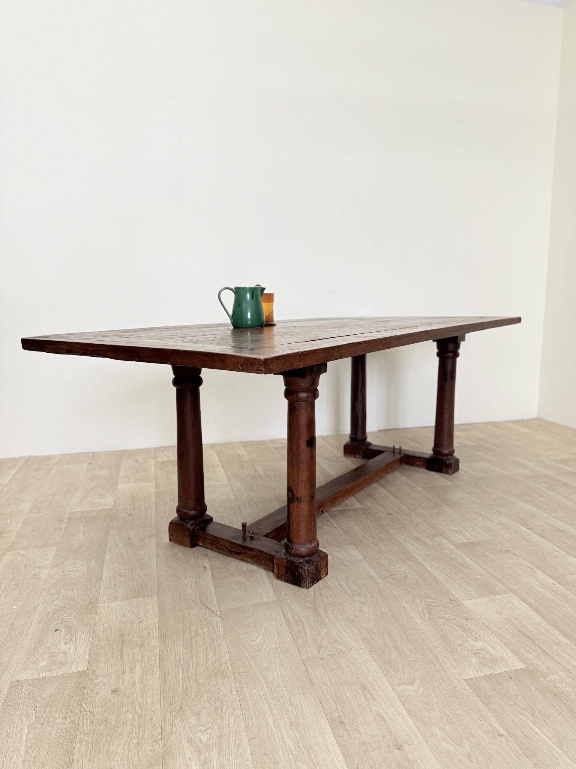 Wyjątkowy stół kolonialny vintage wykonany z litego drewna to mebel z prawdziwą duszą i historią. Solidna, masywna konstrukcja oraz tradycyjna technika montażu podstawy na drewniane kołki i kliny świadczą o rzemieślniczym kunszcie i trwałości, która przetrwa kolejne pokolenia. Nakładany blat podkreśla klasyczny charakter stołu i jego autentyczne pochodzenie.