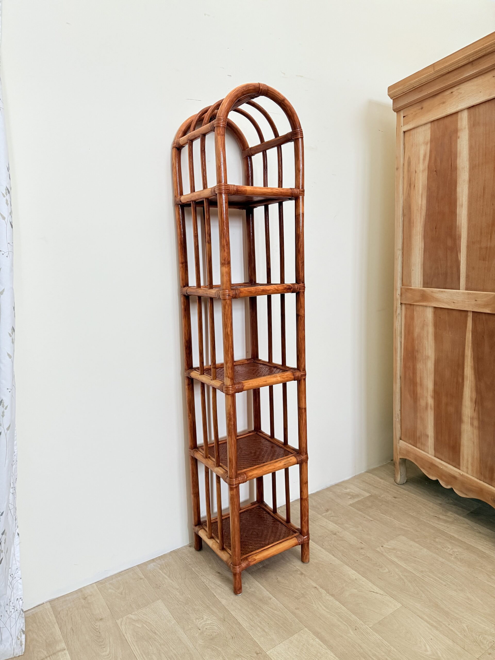 Wąski regał z naturalnego rattanu to doskonałe połączenie estetyki, funkcjonalności oraz ekologicznego podejścia do aranżacji wnętrz. Wykonany z wysokiej jakości naturalnego rattanu, zachwyca lekkością formy, ręcznym charakterem wykonania oraz naturalną kolorystyką, która wprowadza do wnętrza harmonię i ciepło.