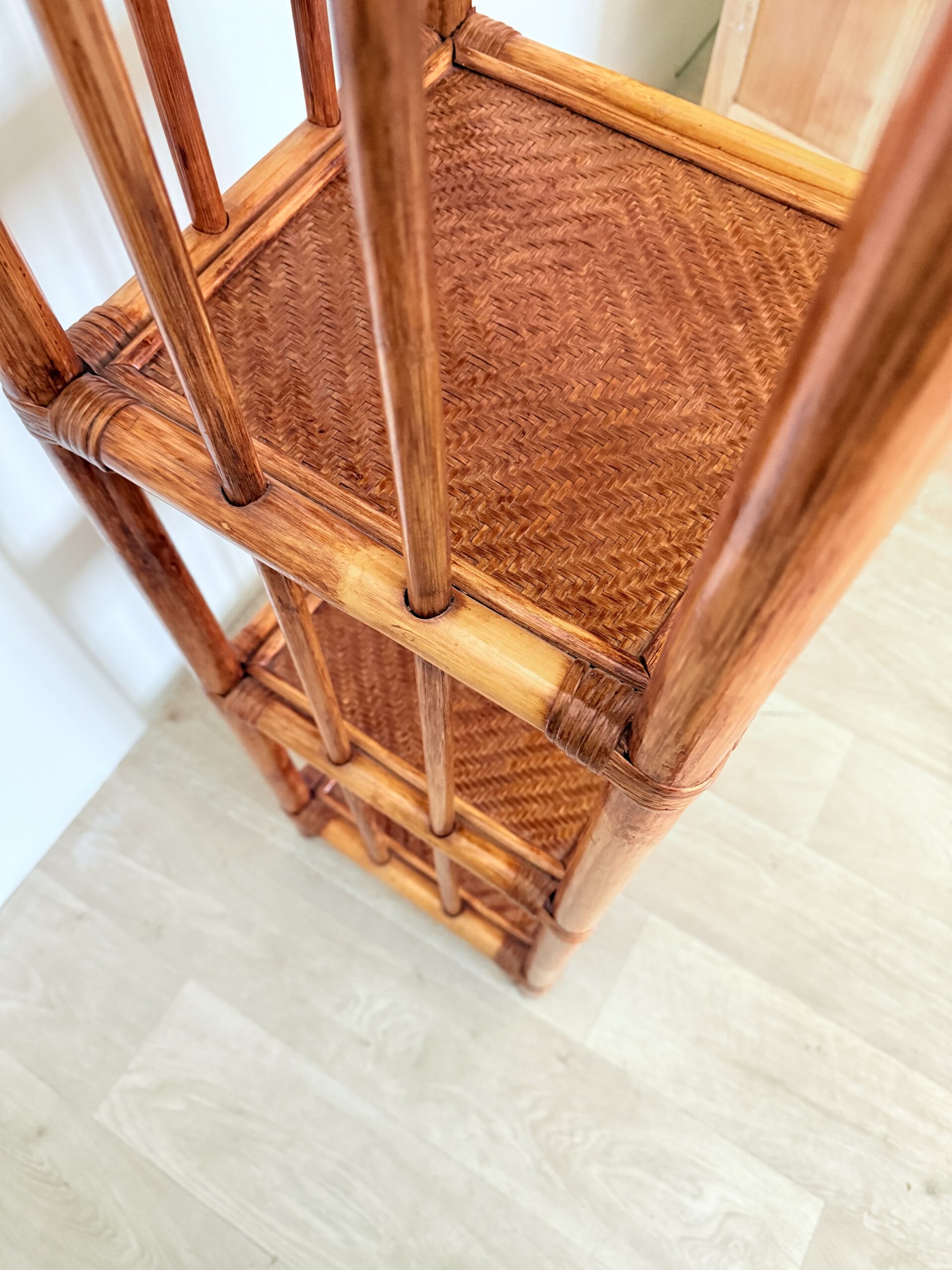 Dzięki smukłej konstrukcji regał idealnie sprawdzi się w łazience, ogrodzie zimowym, na zadaszonym tarasie lub w innych przestrzeniach, gdzie liczy się oszczędność miejsca. Naturalny rattan to materiał oddychający i trwały, który dobrze radzi sobie w pomieszczeniach o podwyższonej wilgotności, zapewniając jednocześnie lekkość i stabilność konstrukcji.