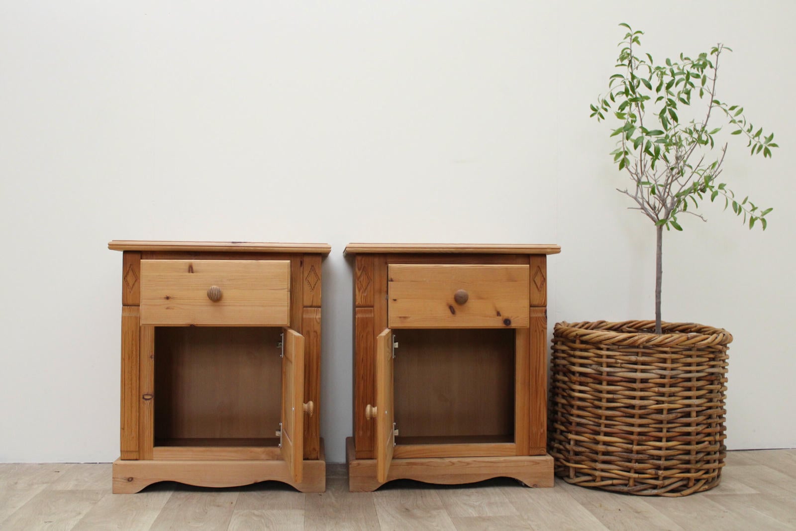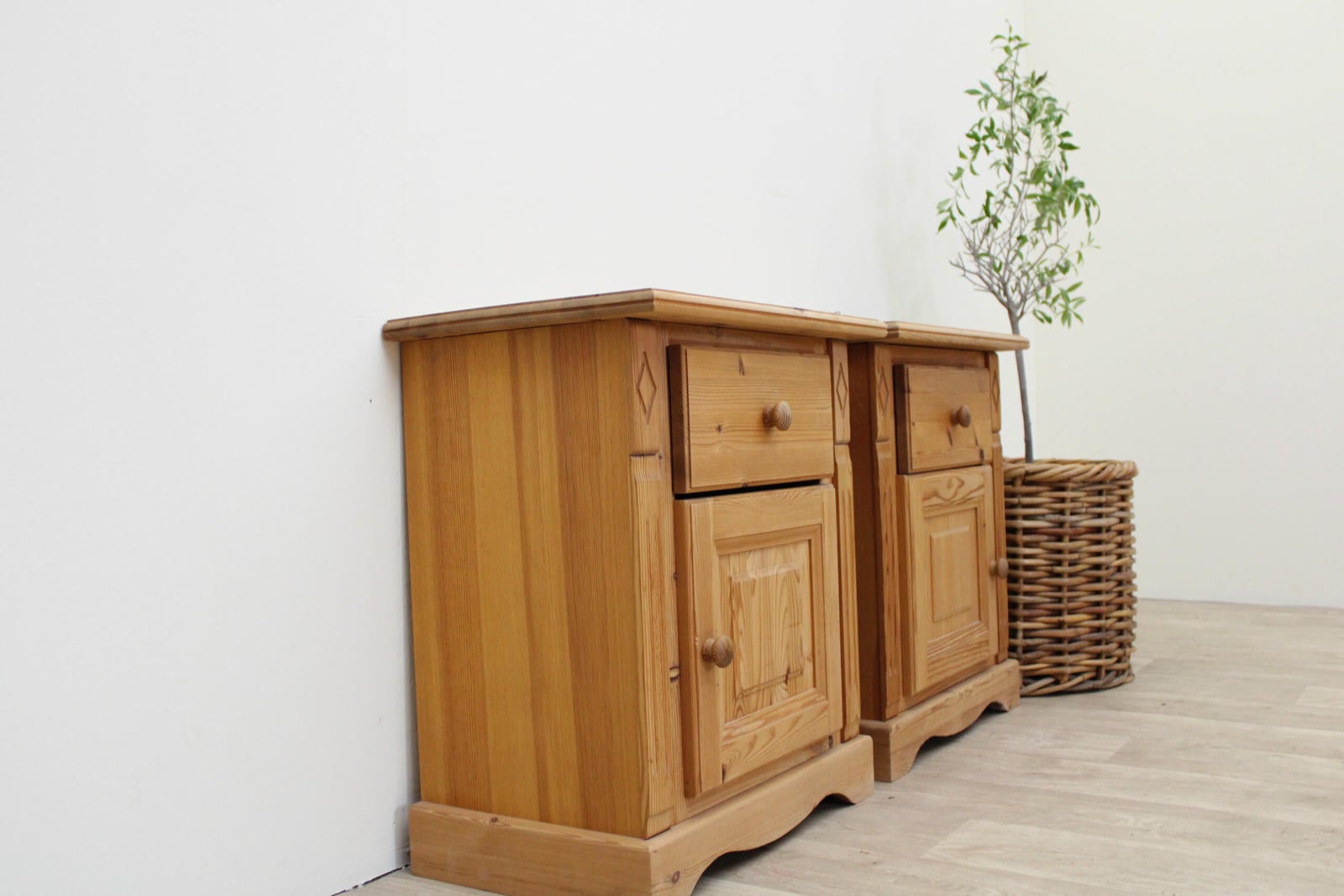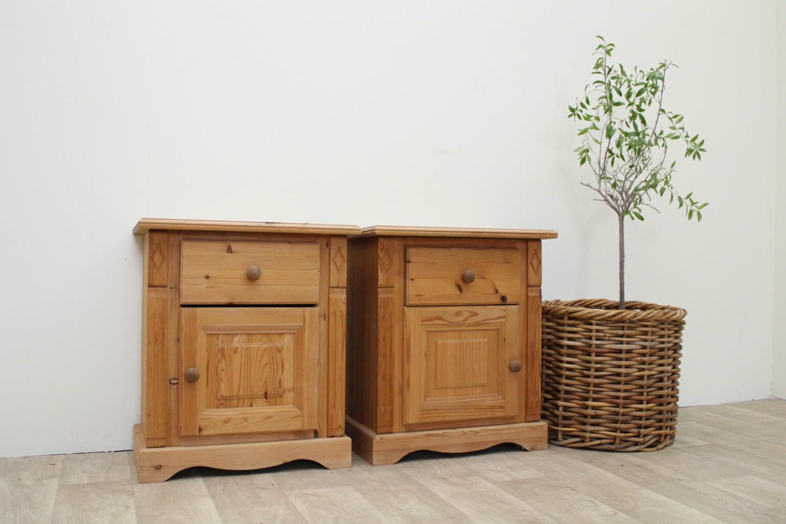 Zestaw 2 szafek nocnych z drewna sosnowego – vintage, naturalne, z duszą