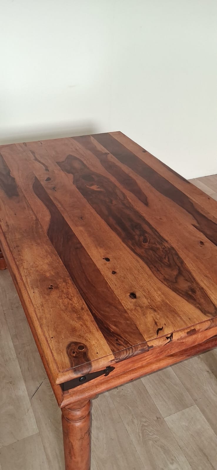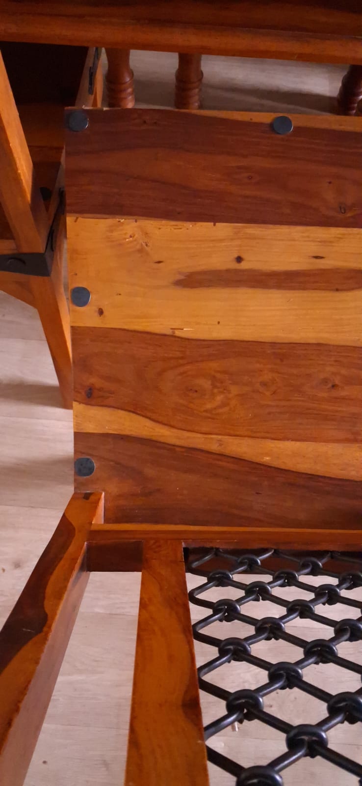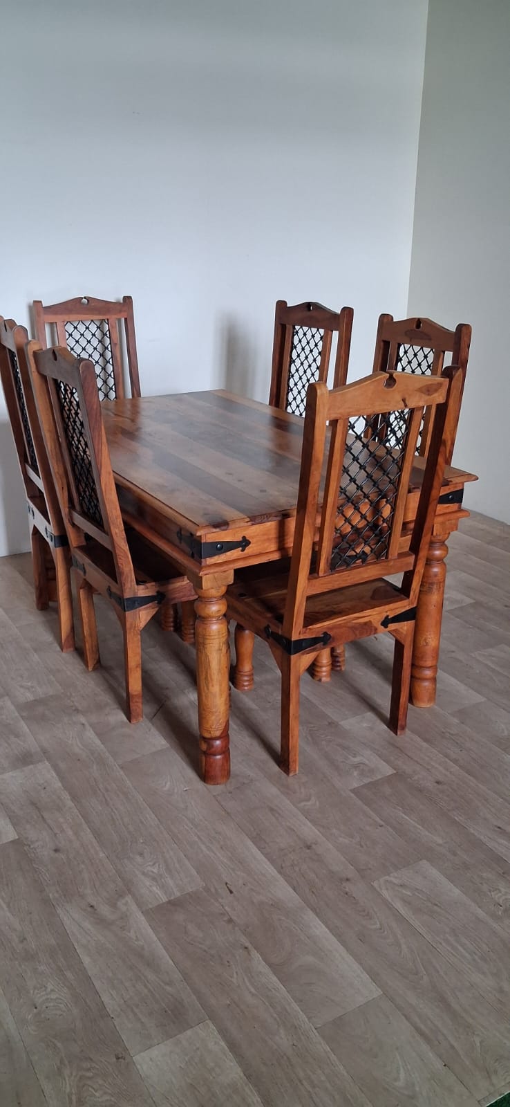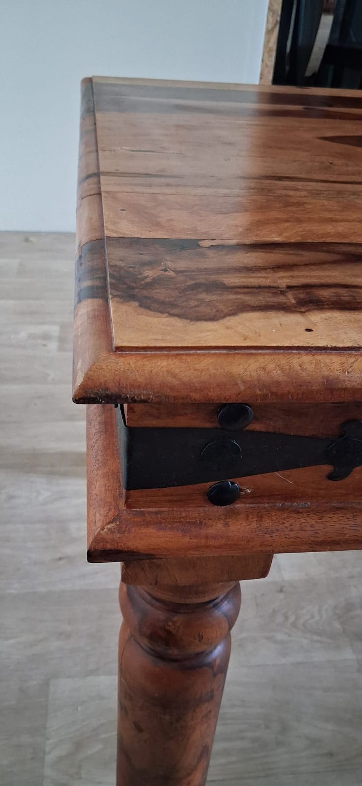 Stylowy zestaw mebli kolonialnych wykonany z litego drewna z elementami metaloplastyki. Komplet łączy naturalne piękno, solidność i wyjątkowy charakter – idealny do jadalni, salonu lub przestrzeni w stylu kolonialnym, rustykalnym czy boho.